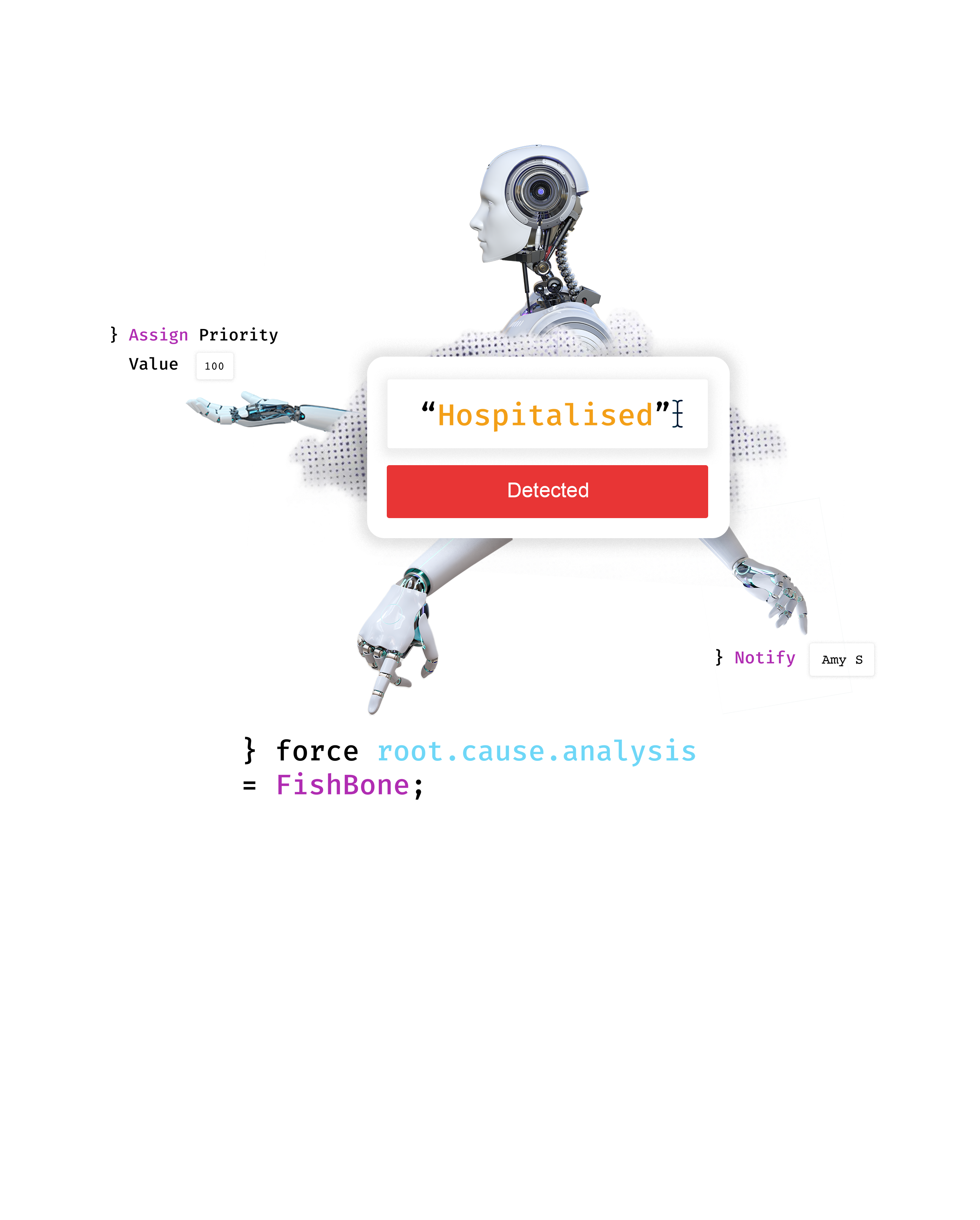 Keywords and certain responses will trigger actions such as sending an email, generating a graph or escalating an incident as a priority.