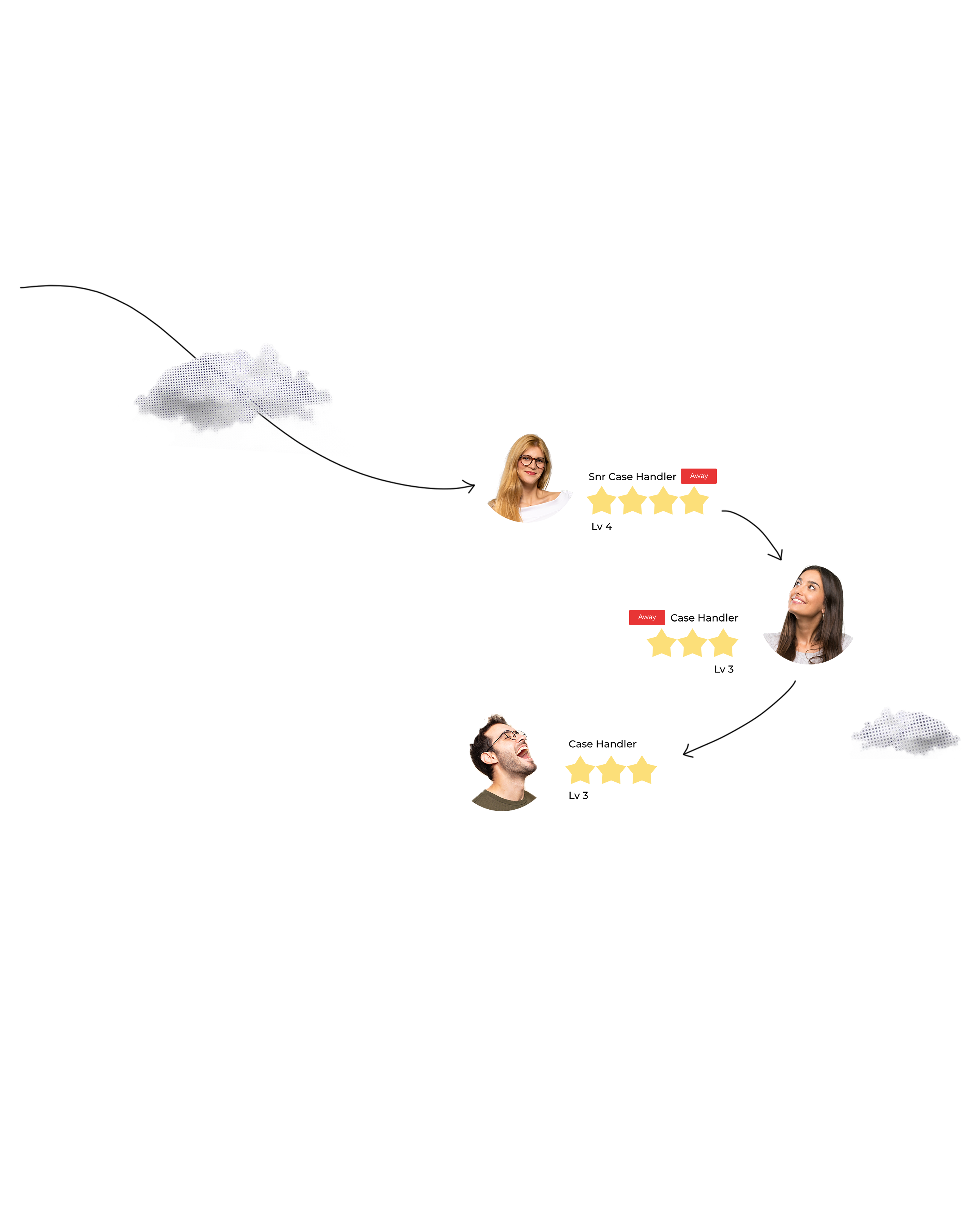 Cases arerouted to the right case handler determined by type, priority and availability.